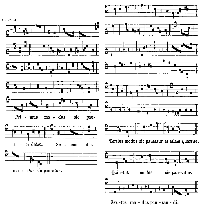 Dico autem pausam tempore mensurari, quia aliter si duo cantus diversi quorum unus cum pausis et alius sine pausis cecinerentur, non possent ad invicem coaequari.