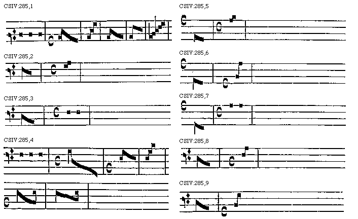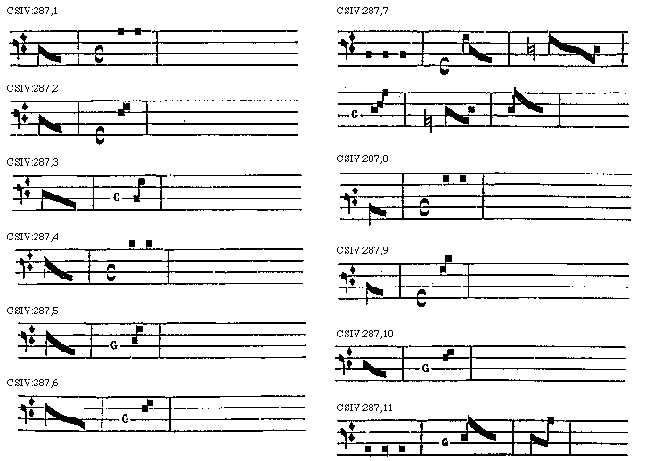 Item notandum quod in Curia Romana et etiam Francigeni non ascendunt per sextas voces cum plano cantu, nisi fuerit raro, et hoc, ut in sequenti exemplo, patet.