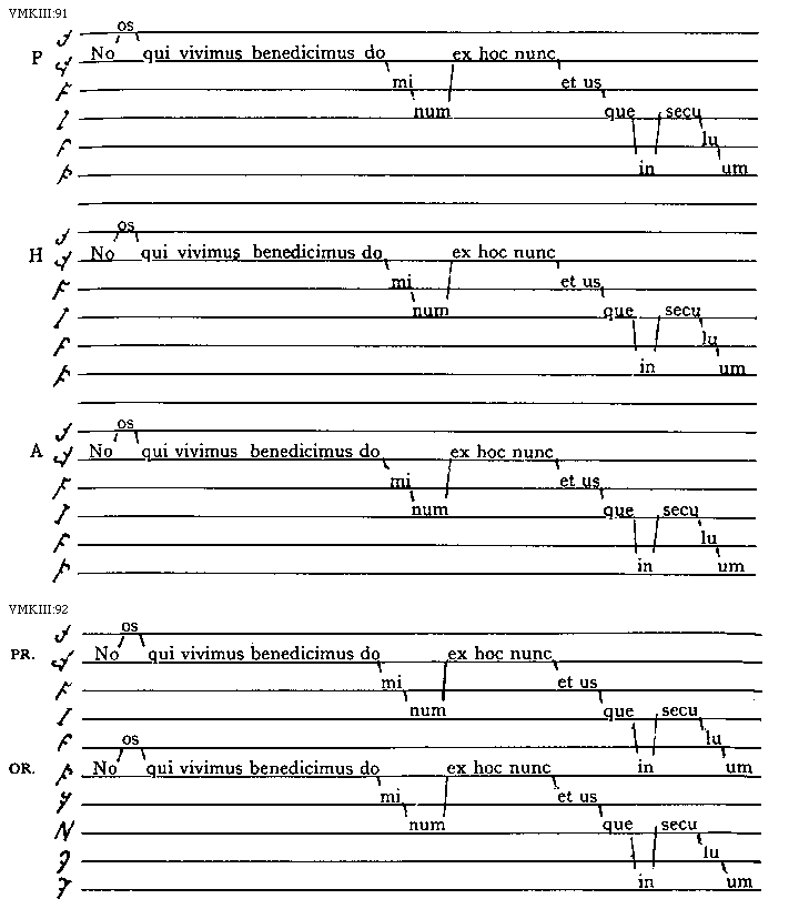 [VMKIII:91; text: P, H, A, Nos qui vivimus benedicimus dominum ex hoc nunc et usque in seculum]