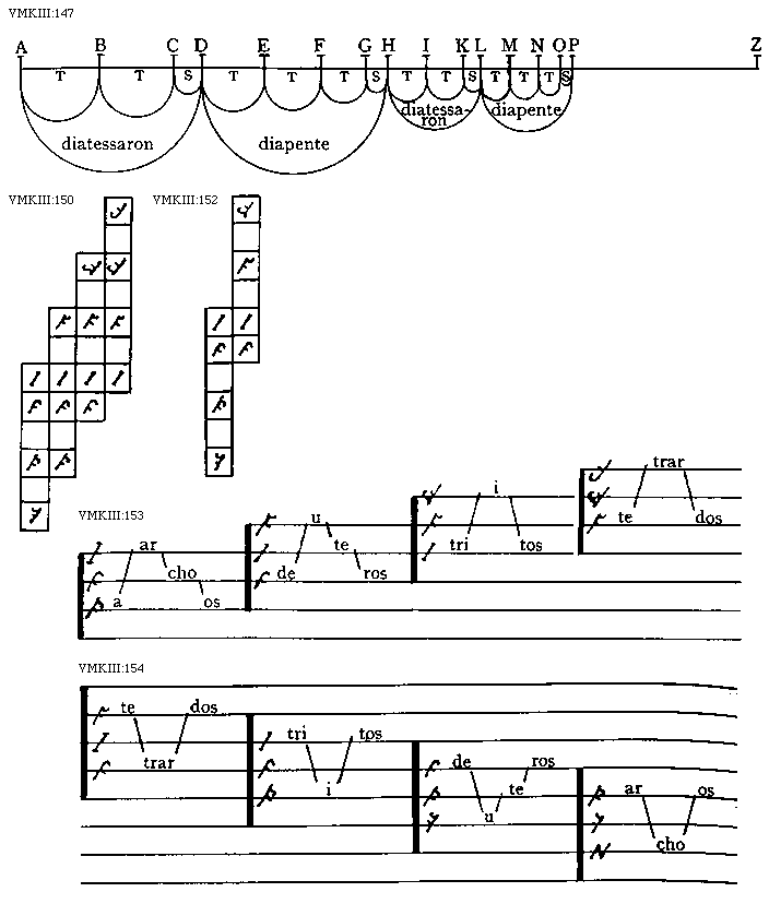 [VMKIII:147; text: A, B, C, D, E, F, G, H, I, K, L, M, N, O, P, Z, diatessaron, diapente, Tonus, Semitonium]