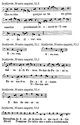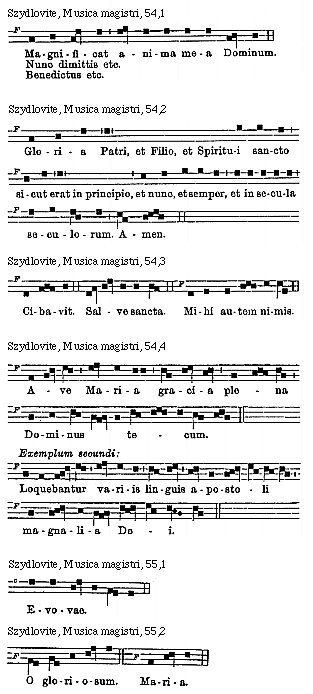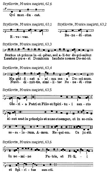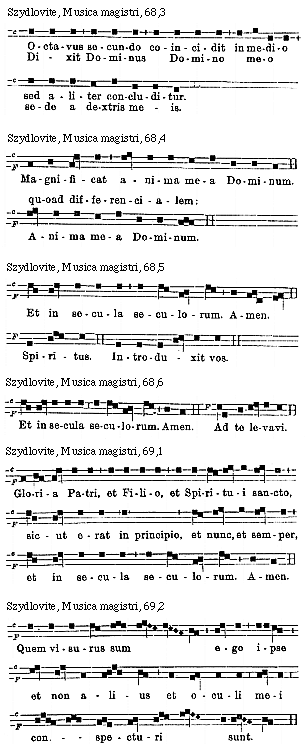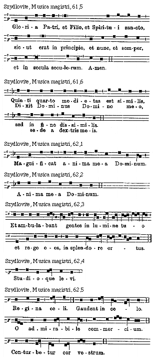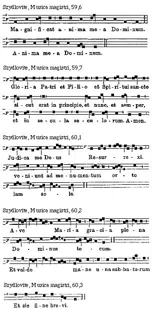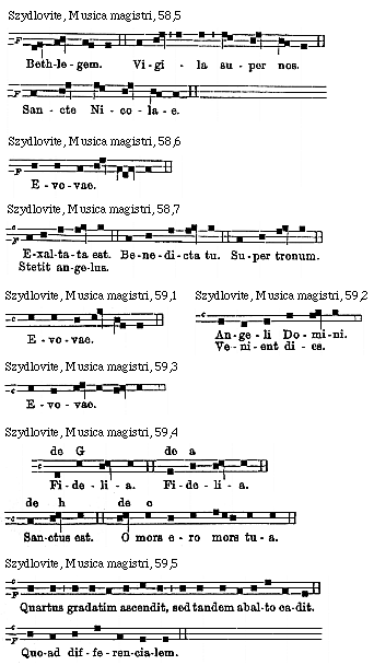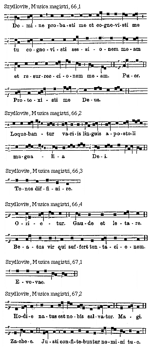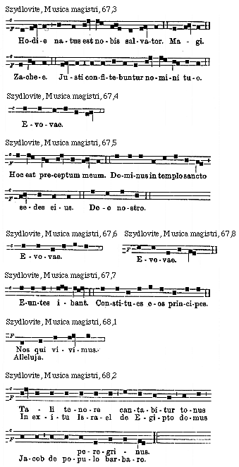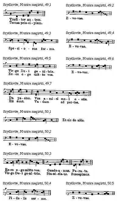 [Szydlovite, Musica magistri, 67,8; text: F, Evovae.]