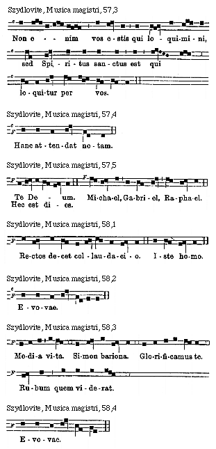 [Szydlovite, Musica magistri, 65,3; text: c, Evovae.]