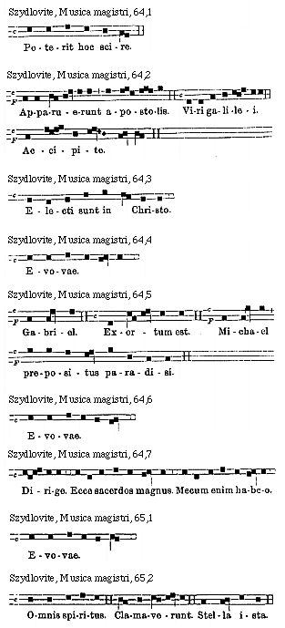 [Szydlovite, Musica magistri, 64,6; text: c, Evovae.]