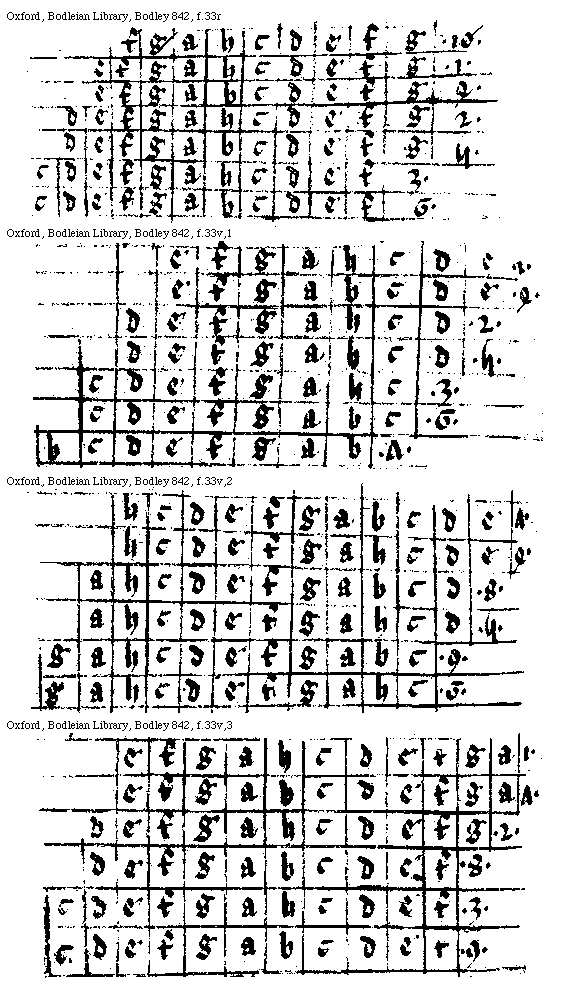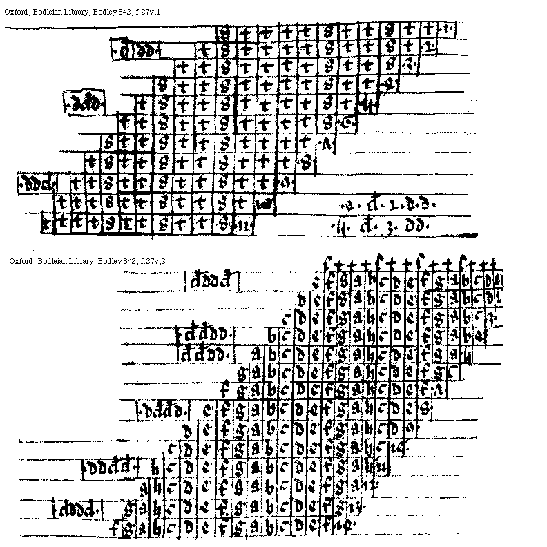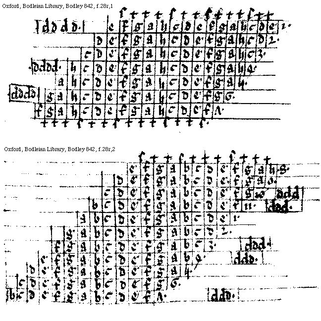 [Oxford, Bodleian Library, Bodley 842, f.28v,2; text: s, t, e, d, c, b, a, g, f]