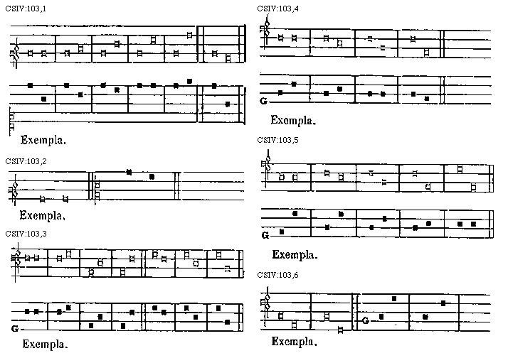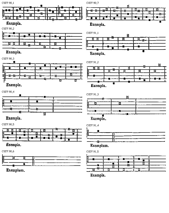 Porro animadvertendum est quod in iis et in reliquis nostrae hujus compilationis exemplis ubi neque tenor, neque contrapunctus suscriptus fuerit, notae vacuae ad tenorem, impletae ad contrapunctum et mixtae idest partim vacuae et partim impletae ad utrumque pertinent.