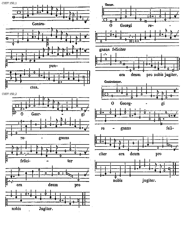 [CSIV:150,2; text: O Georgi regnans feliciter ora deum pro nobis Jugiter. Tenor. Contratenor.]