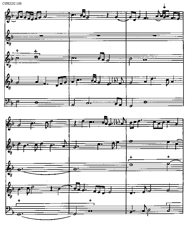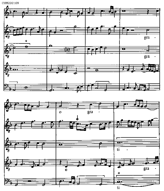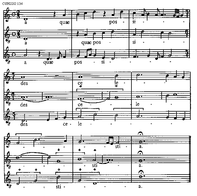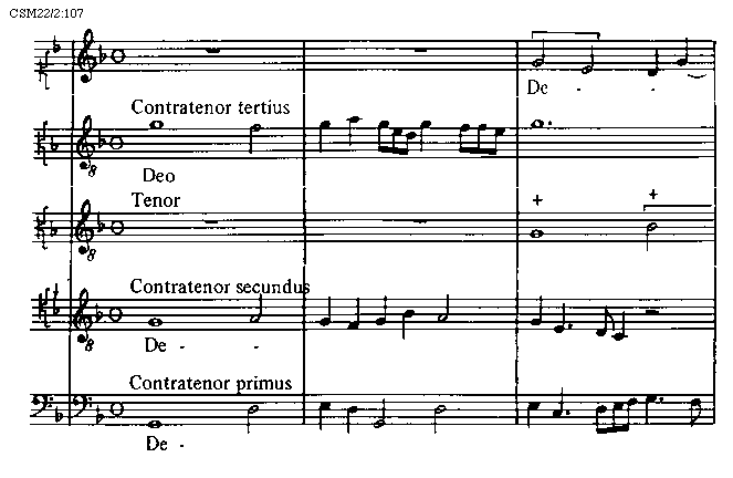 [145][CSM22/2:145; text: Tenor, Contratenor, O Deus princeps caelorum, memor esto musicorum.]
