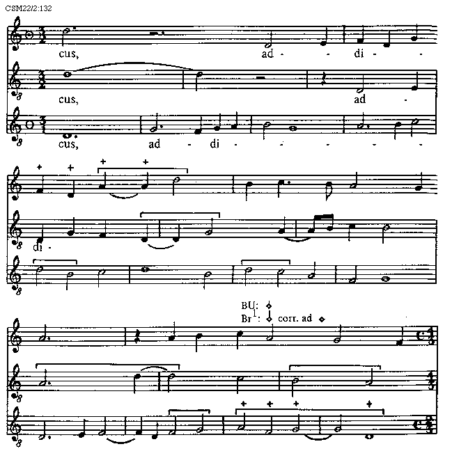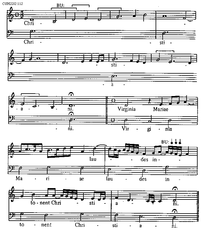 [CSM22/2:139,1; text: Petrus de Domarto, Contratenor altus, Contratenor bassus, etc.]