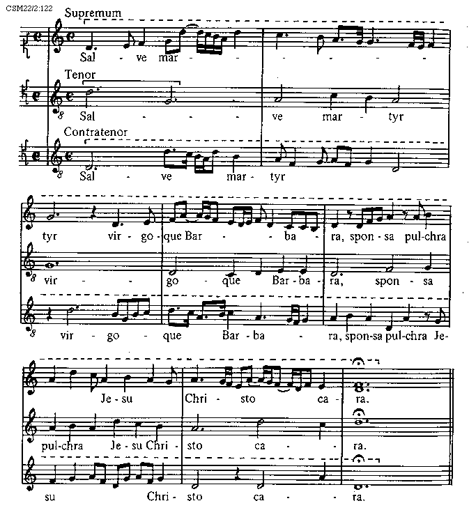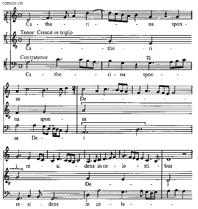 [CSM22/2:135; text: Tenor: Crescit in triplo, Contratenor, Catherina sponsa Dei residens in celestibus]