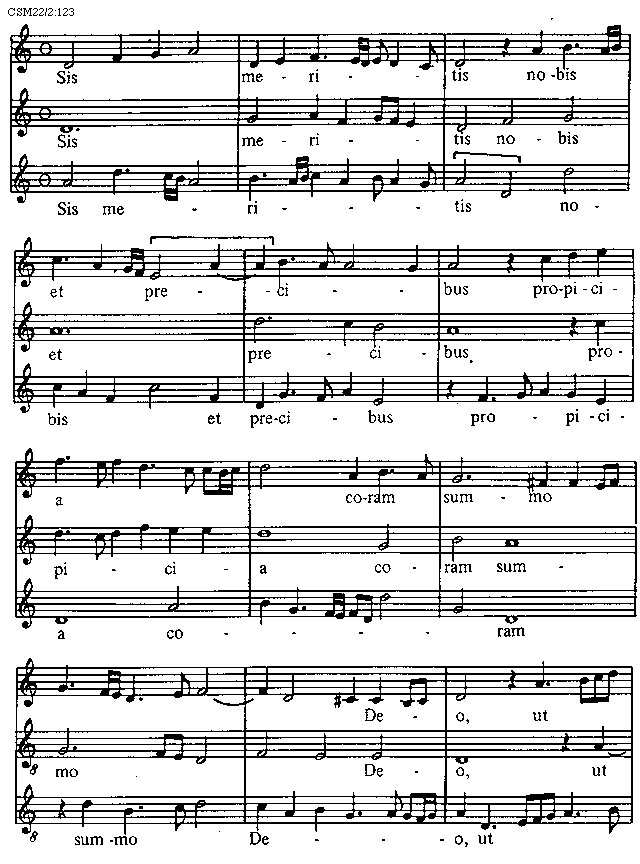 [123][CSM22/2:123; text: Sis meritis nobis et precibus propicia coram summo Deo, ut]