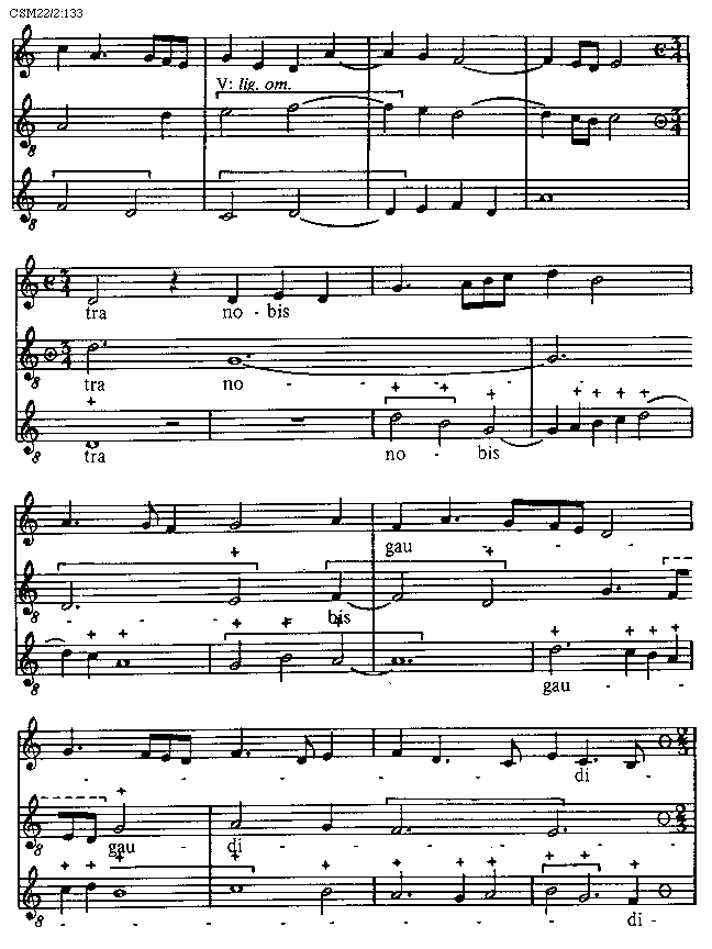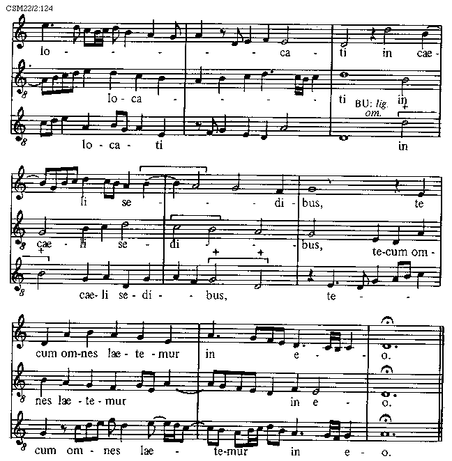 [124][CSM22/2:124; text: locati in caeli sedibus, te cum omnes laetemur in eo.]