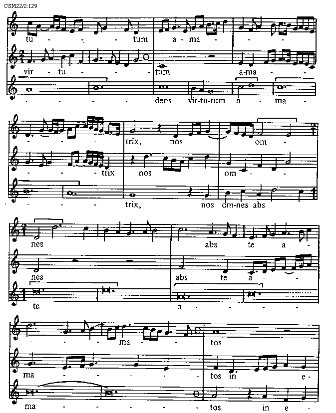 [129][CSM22/2:129; text: virtutum amatrix, nos omnes abs te amatos in e-]