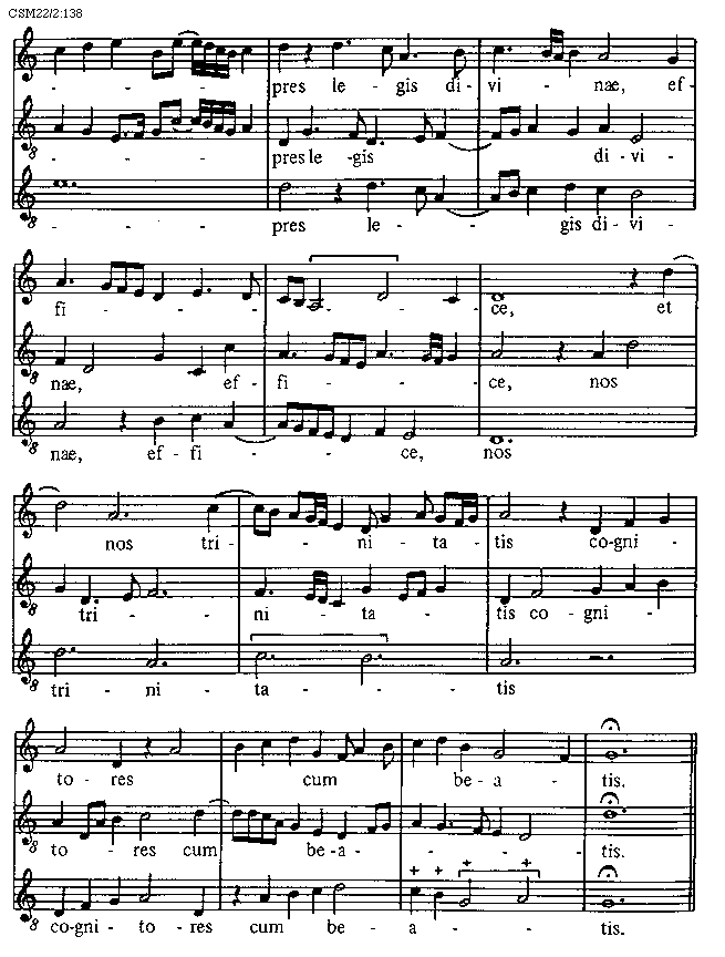 [138][CSM22/2:138; text: -pres legis divinae, effice, et nos trinitatis cognitores cum beatis.]