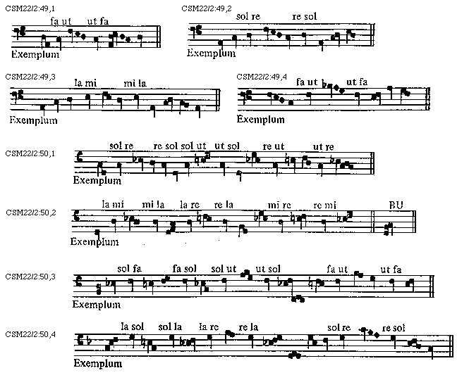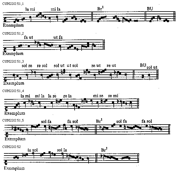[CSM22/2:50,3; text: sol fa, fa sol, sol ut, ut sol, fa ut, ut fa, Exemplum]