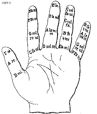 [CSIV:3; text: [Gamma] ut. A re. B mi. E la mi. F Fa ut. G sol. re ut. C fa ut. E la. D la sol. A la mi re. D sol re. C sol fa ut. C sol fa. B fa [sqb] mi. E la mi. B fa [sqb] mi. A la mi re. G sol re ut. F Fa ut.]