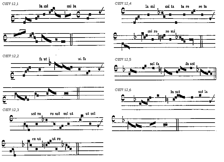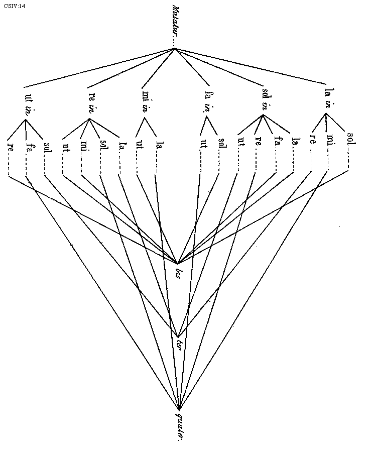 [14][CSIV:14; text: Mutatur...la in sol mi re sol in la fa re ut fa in sol ut mi in la ut re in la sol mi ut ut in sol fa re bis ter quater.]