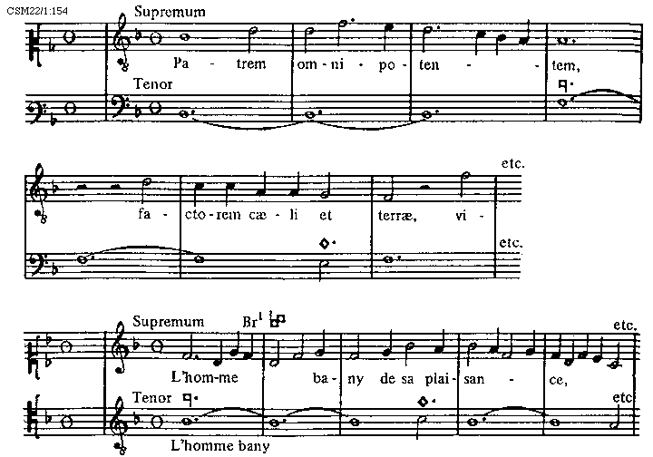[CSM22/1:154; text: Supremum, Patrem omnipotentem, factorem caeli et terrae, vi-, etc., Tenor, L'homme bany de sa plaisance]