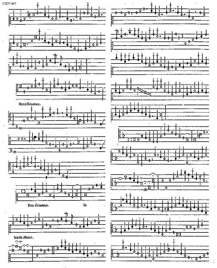 [466][CSIV:466; text: Deo dicamus, In laude Jhesu, Que sue mat i marie benedixit. Duo. Benedicamus.]