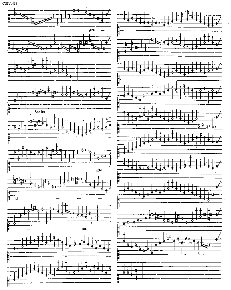 [CSIV:441,2; text: a, [rob], G, e, c, f, [sqb], d, [Gamma], la, sol, fa, mi, re, ut]
