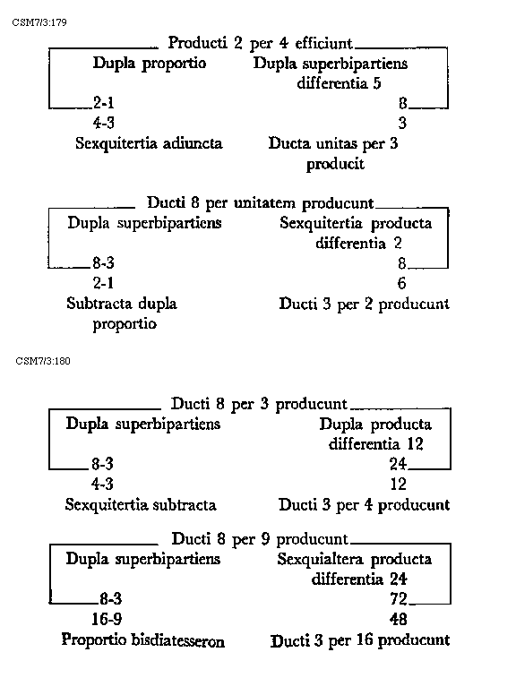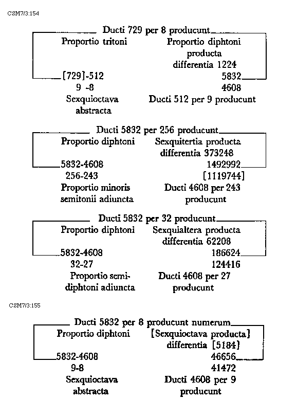 Ex his autem quae in hoc capitulo sunt declarata de tono et partibus eius diligens proportionista faciliter proportiones partium toni quarumcumque cognoscet, et quoniam quam plures speculationes proportionum ignorant, ut toni et partium eius sic figuraliter proportiones intelligant, has toni divisiones secundum Philolaum tradidimus, quibus de his quandam sument cognitionem.