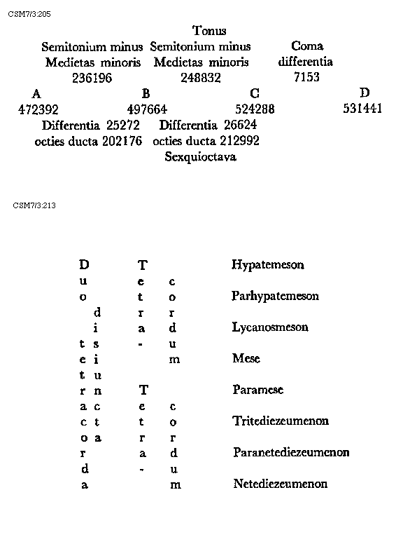 [CSM7/3:220,4; text: Diatesseron, Semitonium, Apotome, A, B, C, E, D, Tonus]