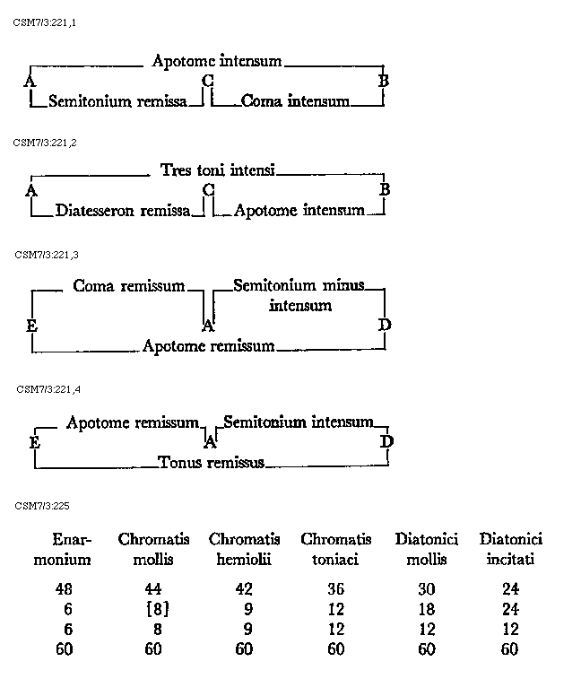 [CSM7/3:221,1; text: Apotome intensum, A, C, B, Semitonium remissa, Coma intensum]