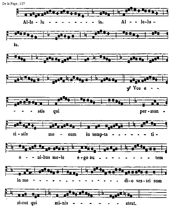 [De La Fage, 137; text: Alleluia. Versus Vos estis qui permansistis mecum in temptationibus meis ego autem in medio vestri sum sicut qui ministrat.]