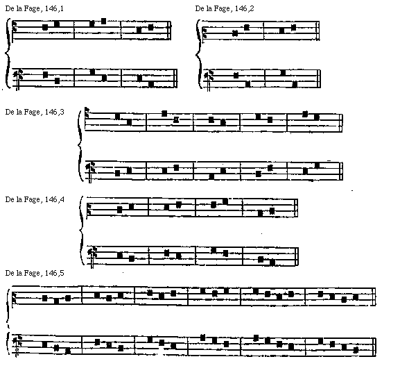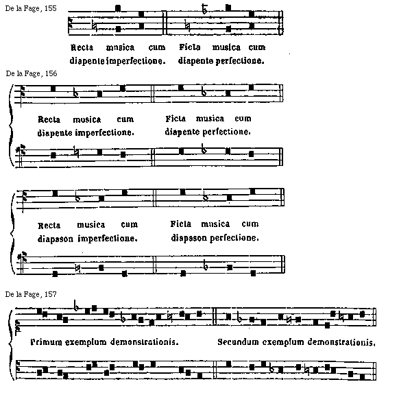 [De La Fage, 156; text: Recta musica cum diapente imperfectione. Ficta musica cum diapente perfectione. Recta musica cum diapason imperfectione. Ficta musica cum diapason perfectione.]