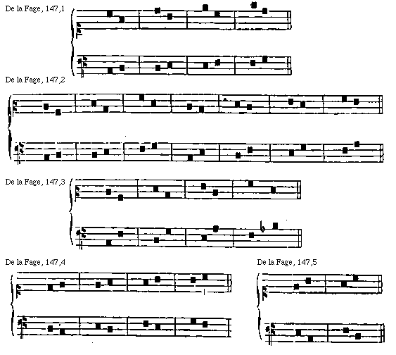 [142]descendentem; octavam etenim imperfectam constituunt vel ipsam maximam efficiunt, quae discordantiae sunt....... Similiter in aliis igitur mi et fa pro consonantiarum terminis utendum non est.