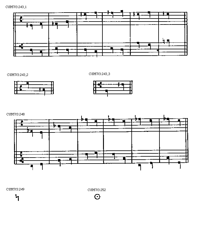 [251][CSM7/3:251; text: T, Y, S, V, X, Z, 7, 9, coma, A, B, [sqb], C, D, E, F, G, M, I, O, L, H, N, K, P, Q, R, Semitonium maius, Semitonium minus]