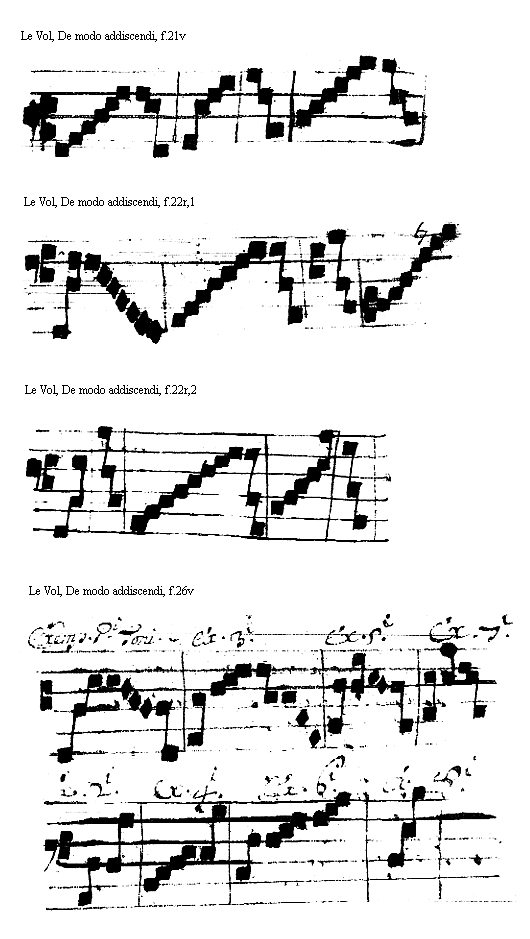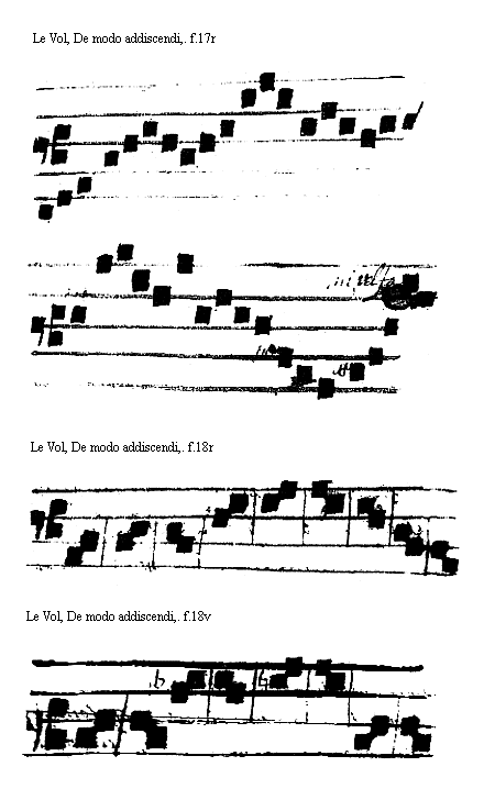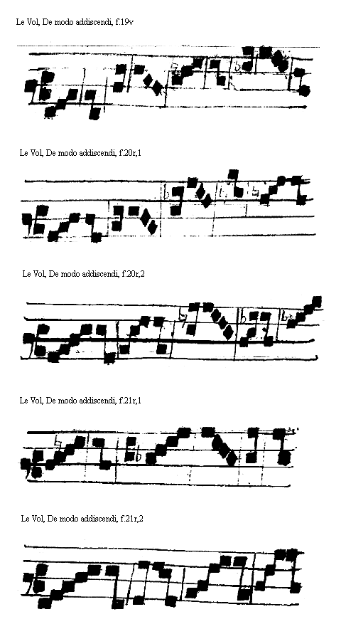 [Le Vol, De modo addiscendi, f.17r; text: la, sol, ut, mi, vel fa]