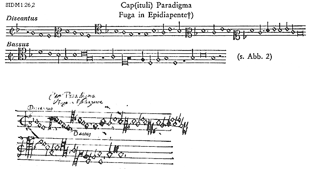 [SIDM1:26,2; text: Fuga in Epidiapente, Discantus, Bassus]