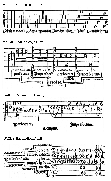 [Wollick, Enchiridion, f.ivr; text: In modo maiori, I modo minori, In tempore, In prolatione]