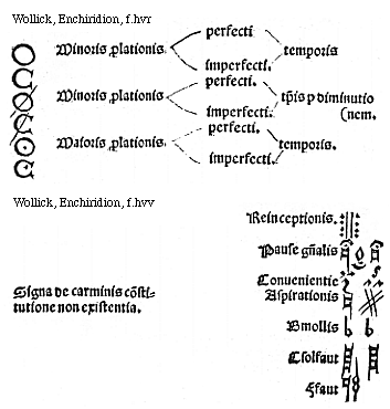 [Wollick, Enchiridion, f.hvr; text: Minoris prolationis, perfecti, imperfecti, temporis, temporis per diminutionem, Maioris prolationis]