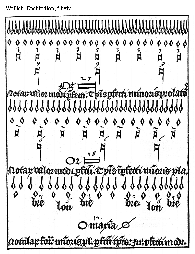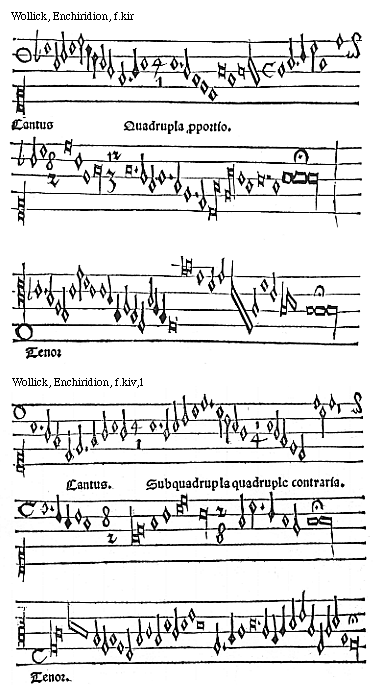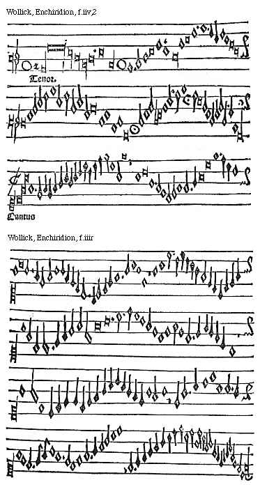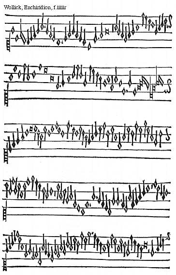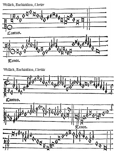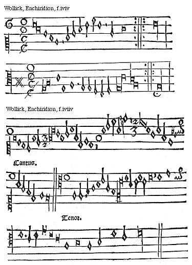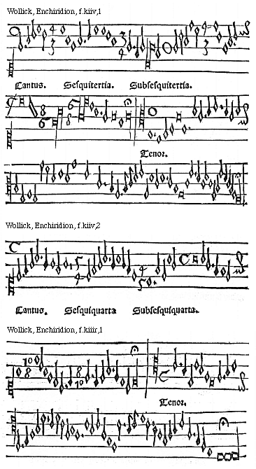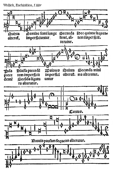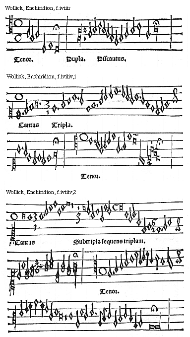 Source:Enchiridion musices Nicolai Wollici Barroducensis de gregoriana et figuratiua atque contrapuncto simplici percommode tractans, omnibus cantu oblectantibus perutile et necessarium (Impressum Parisii impensa honestissimorum virorum Iohannis Parui ad intersignium Leonis Argentei et Francisci Regnault ad intersignium diui Claudii commorantium. Anno virginei partus .1512. 14. kalendas Nouembris), ff. gviiv–kiiiir.